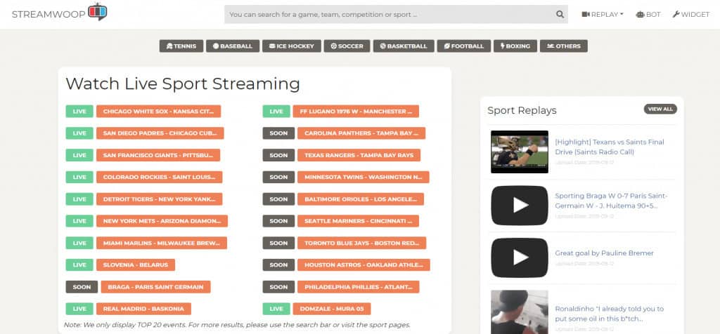 Another useful website that functions as a database for most of these sports streaming sites is this one. If you don’t care about not getting free and high-quality streaming video straight on the website, here is the best place to go.